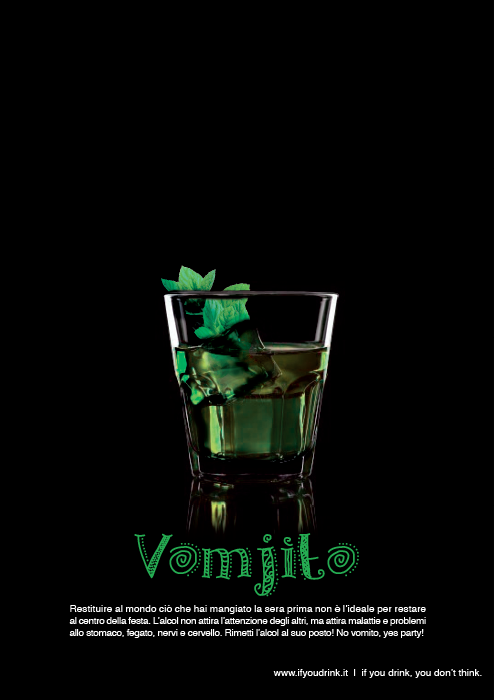Giocando con i nomi cocktail si è cercato di andare oltre la parvenza fresca e glamour che questi ispirano, per puntare dritto sulle conseguenze dell'assunzione di alcol nel giovane.